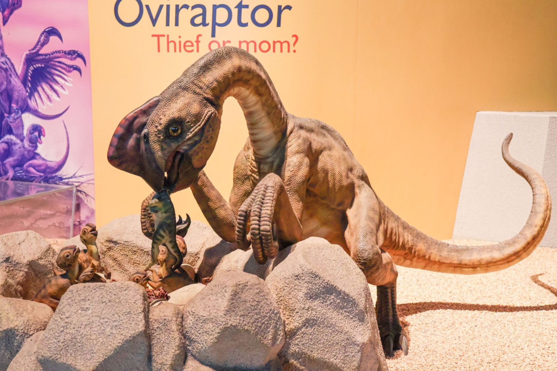 竊蛋龍是一種中小型恐龍,生活於白堊紀時期的亞洲與北美,20世紀初在蒙古戈壁沙漠被發現及命名以來,牠特殊的生殖行為備受關注。科博館楊子睿博士過去曾針對竊蛋龍發表兩篇研究,指出竊蛋龍的蛋窩呈多圈圓環狀排列,中心留有空隙,因此身體接觸到蛋的程度遠低於現代鳥類。過去的研究發現,竊蛋龍的蛋為「非同步孵化(同窩蛋在不同時間破殼)」,從化石紀錄中也可知,牠們的蛋曾出現「內圈向外圈」與「外圈向內圈」兩種截然不同的孵化模式,因此「成體竊蛋龍坐在中間,真的能有效將熱量傳遞給外圈的蛋嗎?」是長期以來令古生物學家困惑的難解之謎。