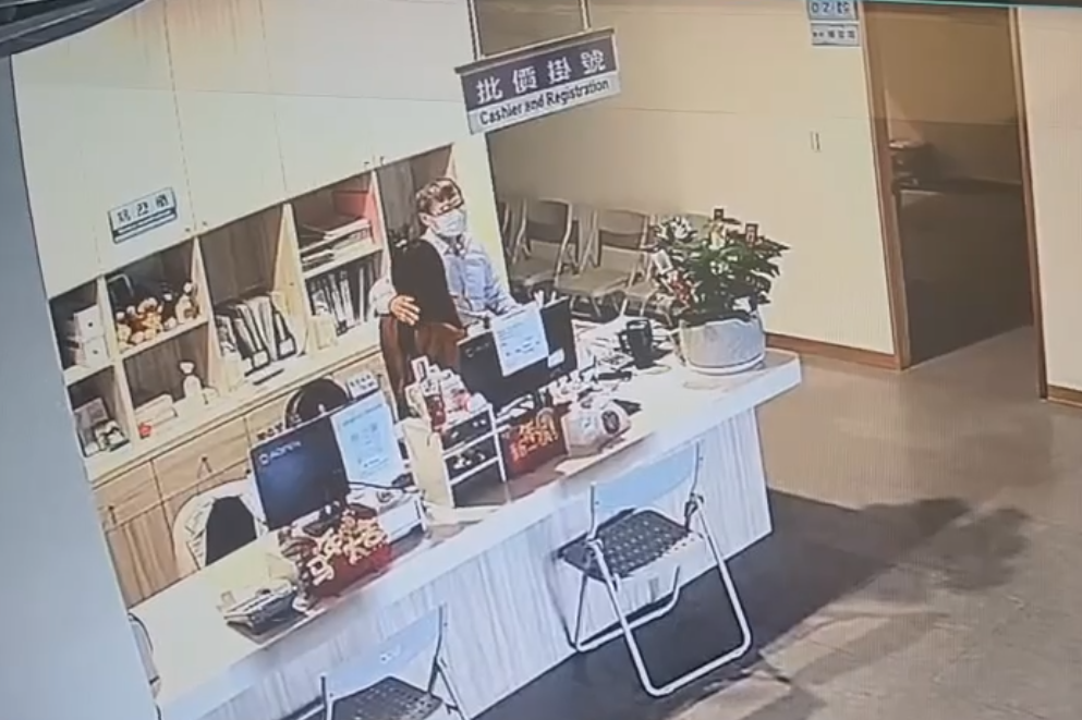 邱哲怡強行摟抱診所女員工。翻攝畫面
