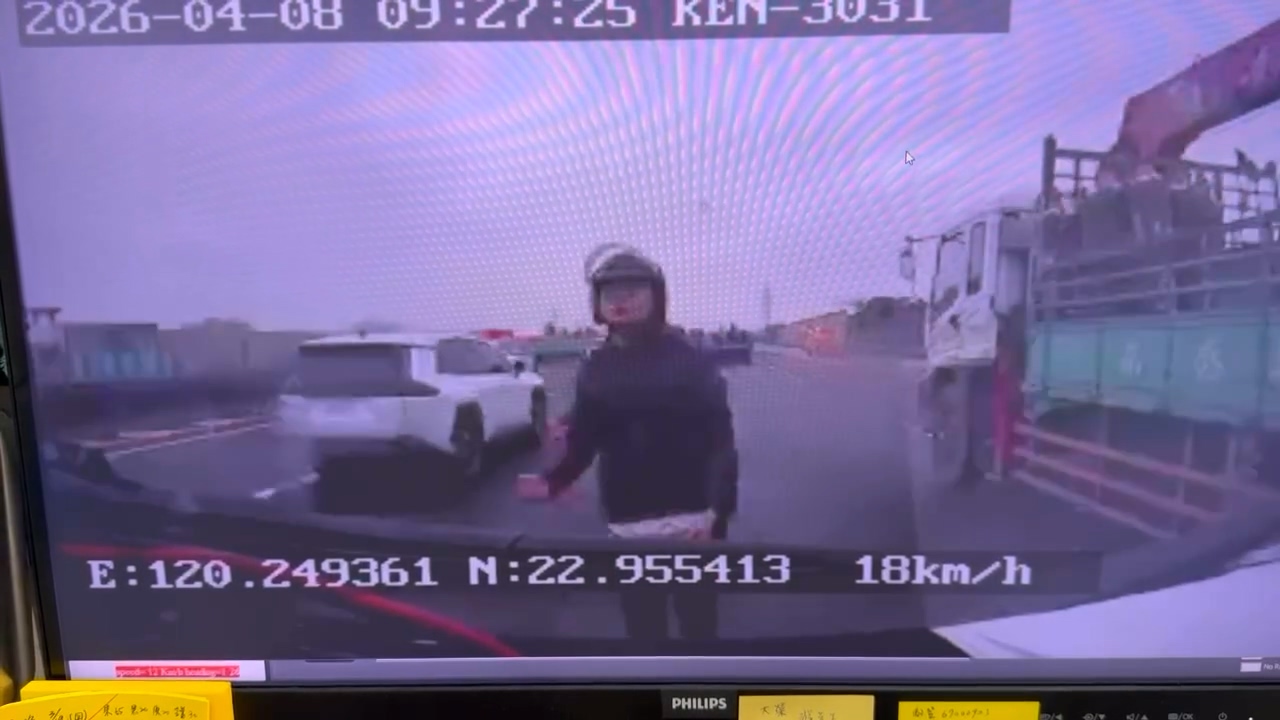 一名張姓男騎士今(8)日騎車上國道,還將車停在國道1號台南仁德路段,然後攔下小貨車,跟小貨車司機發生扭打。