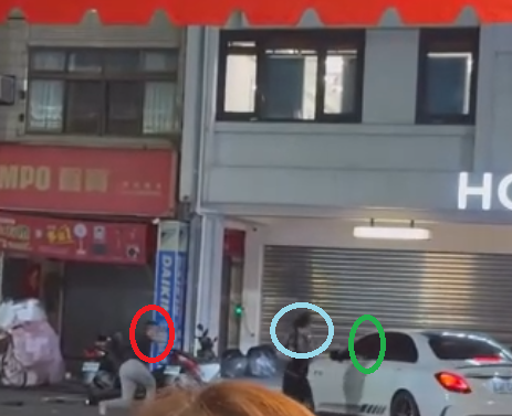 詐團收水手李姓男子(紅圈處)、車手林姓男子(藍圈處)及收水手陳姓男子(綠圈處)。