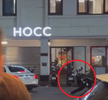 詐團車手林姓男子(紅圈處)上繳贓款與收水手發生爭執拉扯,帶著錢欲逃跑摔倒鈔票散落。翻攝畫面