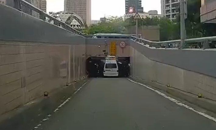 復康巴士高度超過限高硬闖基隆路地下道,結果車頂撞爆。翻攝畫面