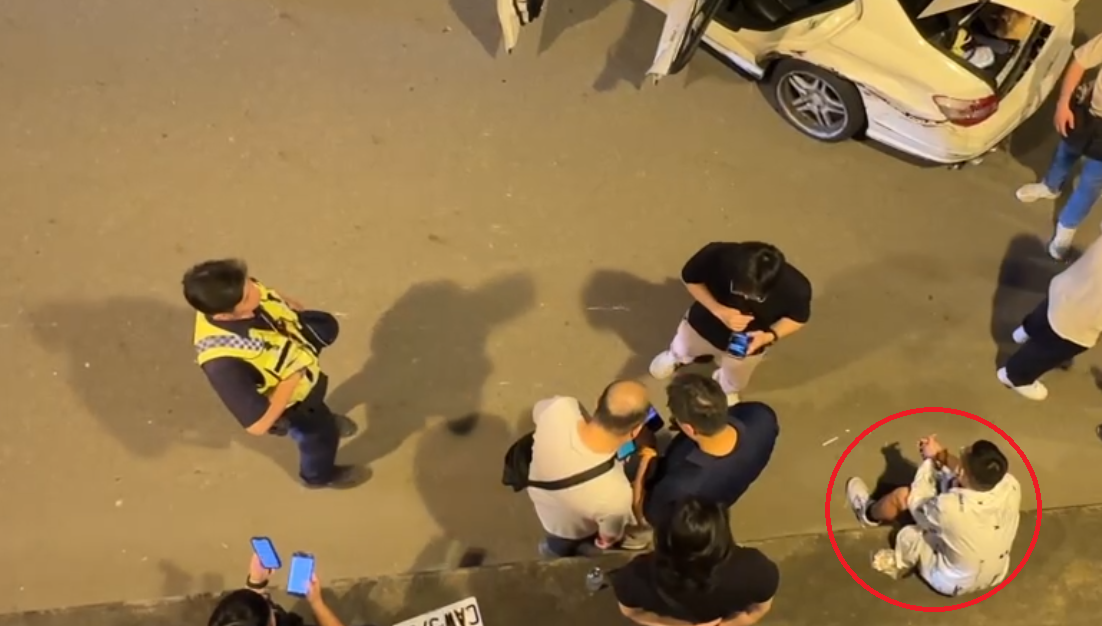 警方攔車逮捕嫌犯(紅圈處)。翻攝畫面