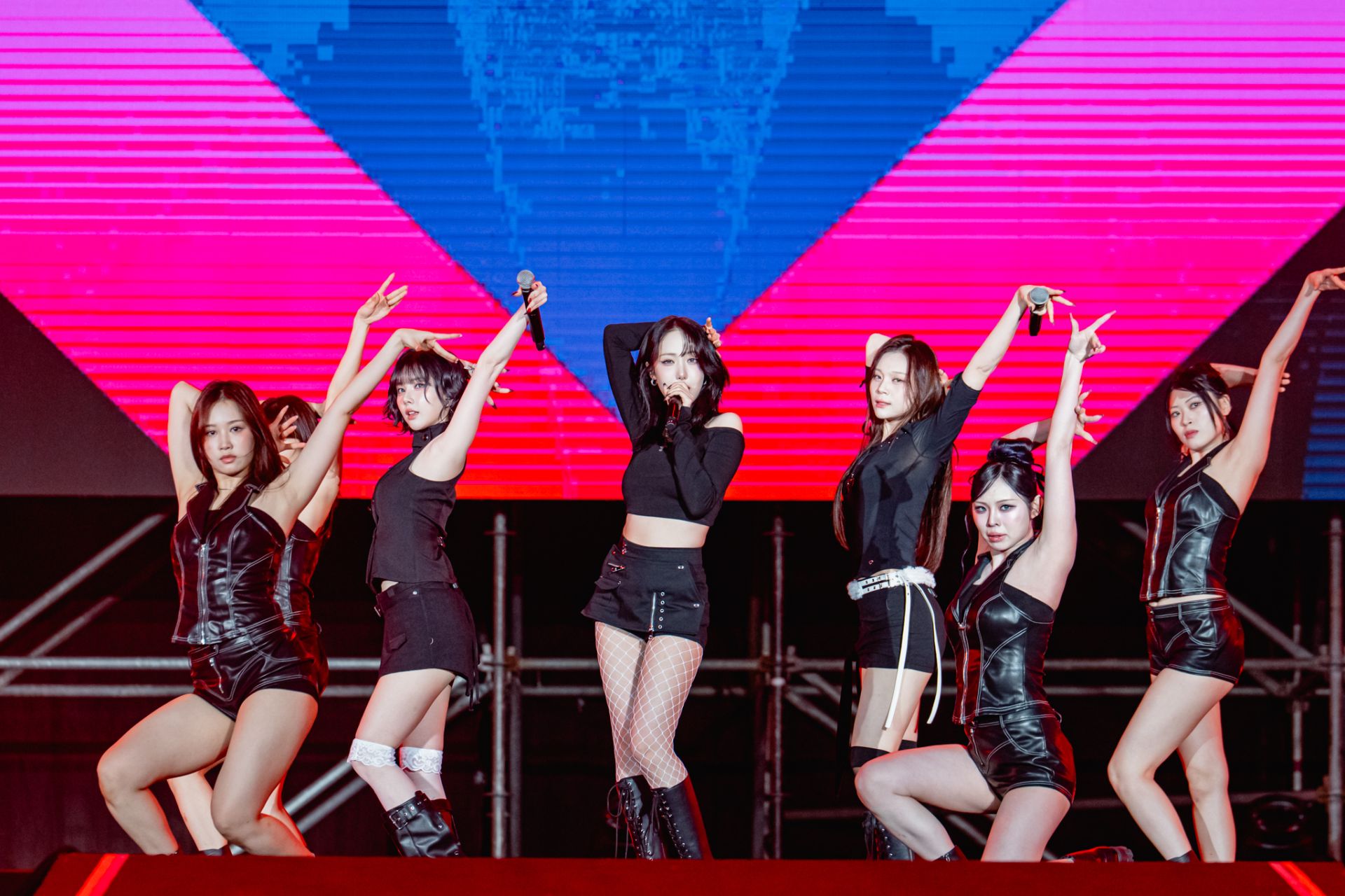 2026高雄櫻花季音樂節15日晚間迎來尾場,韓國人氣女團VIVIZ在壓軸前登場,3位成員以黑色系短裙造型亮相,一連帶來多首熱門歌曲,勁歌熱舞讓現場氣氛瞬間沸騰。