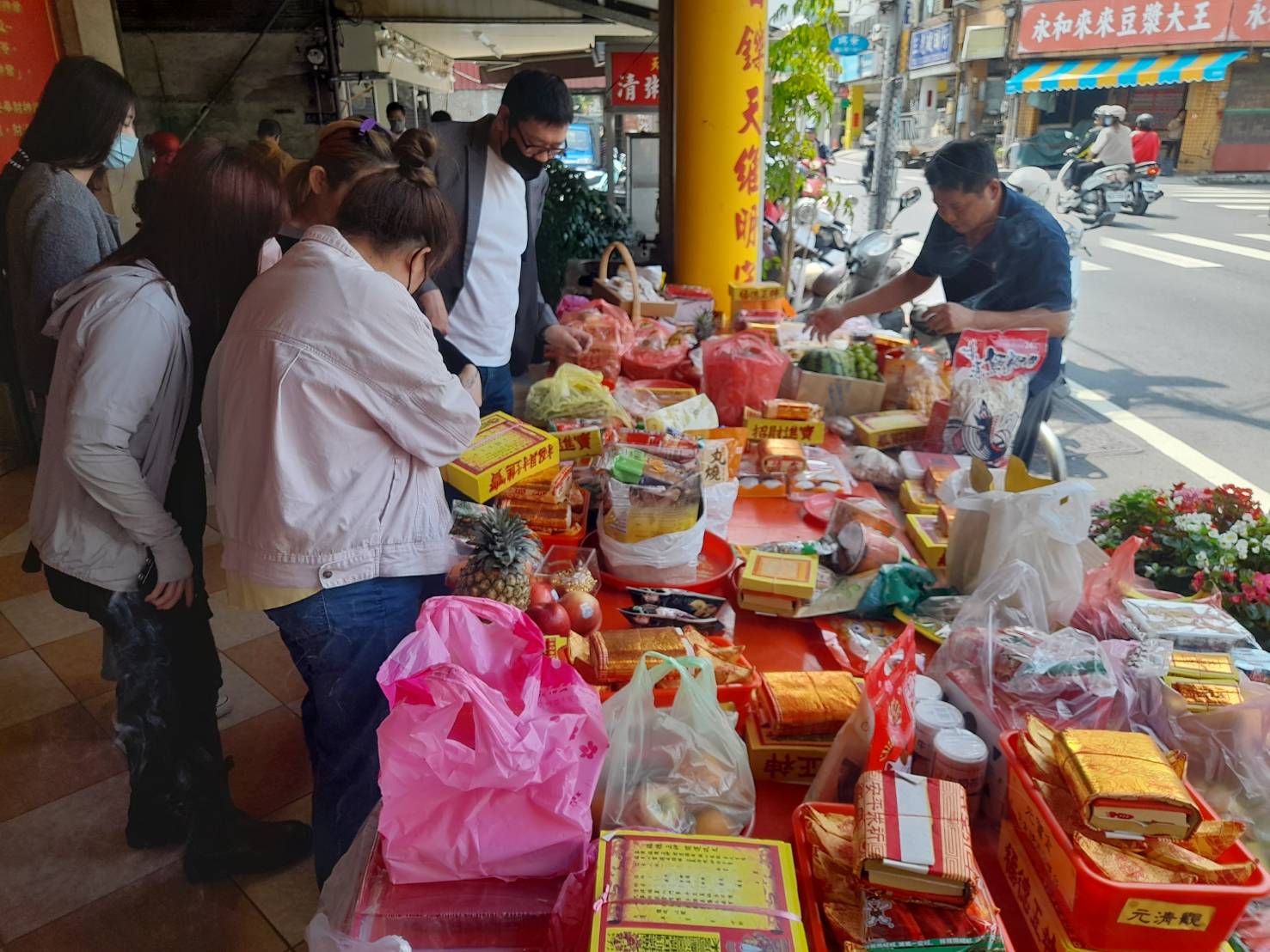 圖說:頭牙好日子,信眾準了牲果、餅乾向土地公祝壽 並祈求新的一年發大財