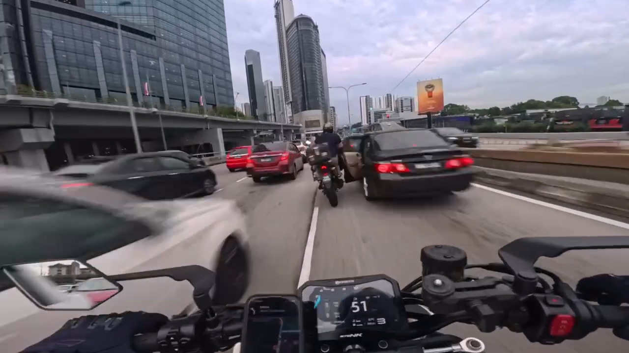 根據外媒報導,6日傍晚6時15分,在吉隆玻發生車禍事故,2輛機車在中間車道行駛時,一輛黑色轎車的後座左側車門突然打開,直接導致一名騎士撞上並摔倒,後方機車也煞車不及,輾過前方的騎士後也摔倒。