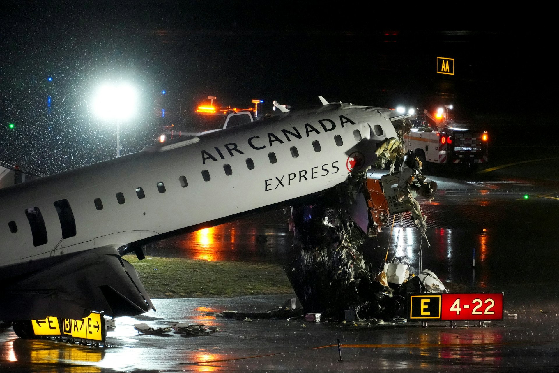根據外媒報導,該航班自蒙特婁飛往紐約,事發當時正逢大雨,視線不佳。目擊者指出,飛機疑似未及時減速,在塔台急喊「停下」的情況下仍衝撞消防車,甚至一度斷裂,現場瀰漫焦黑痕跡,令人不寒而慄。