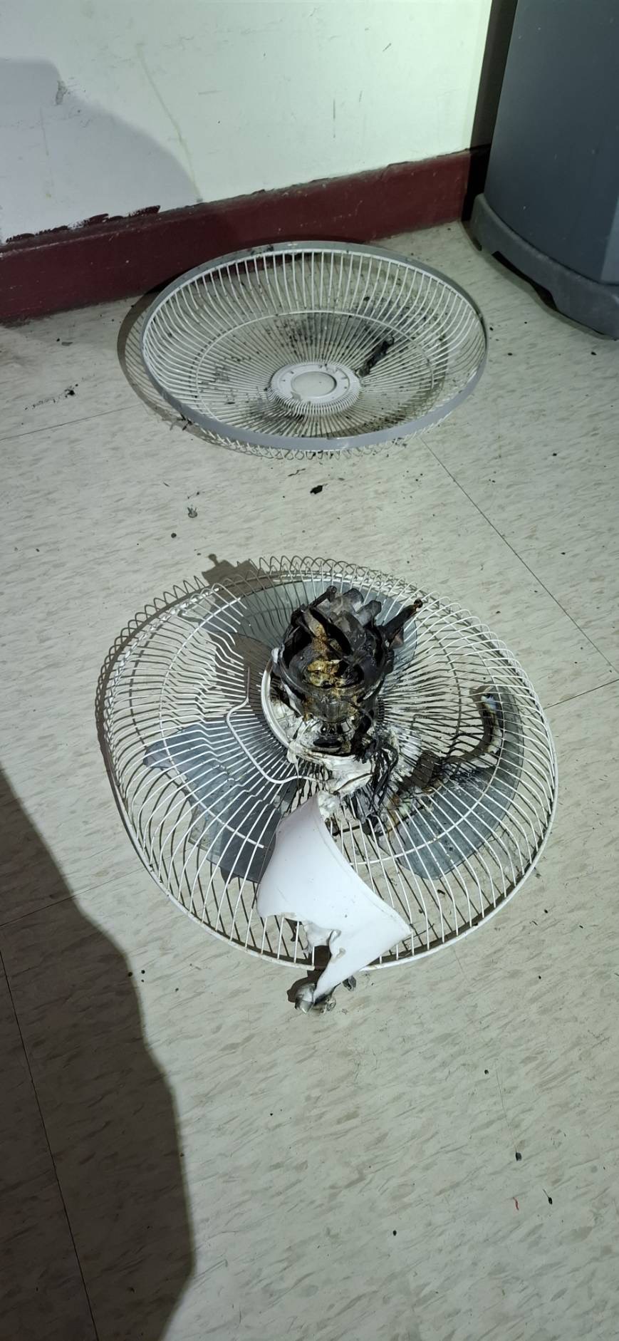 彰化縣老人養護中心電風扇電線起火引發火警。翻攝畫面