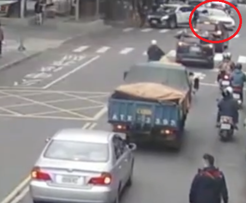 樹林警分局樹林派出所警員執行巡邏勤務時於今(7)日中午10時56分發現一輛自小客車跨越雙黃線行駛,遂上前攔查。該車駕駛佯裝配合停車,隨後突然倒車,撞及後方停等之機車。