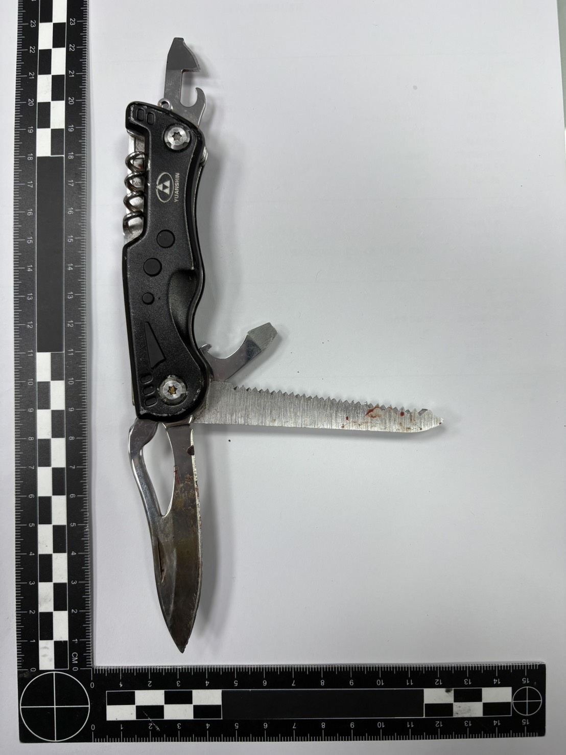 警方查扣葛姓男子行兇用的折疊刀。翻攝畫面