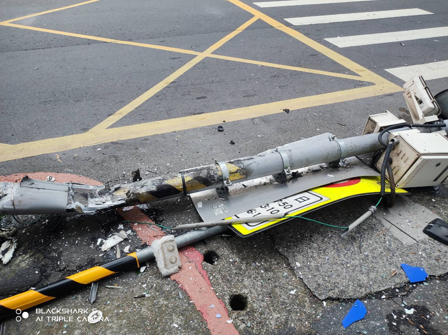 燈桿被撞斷。翻攝畫面