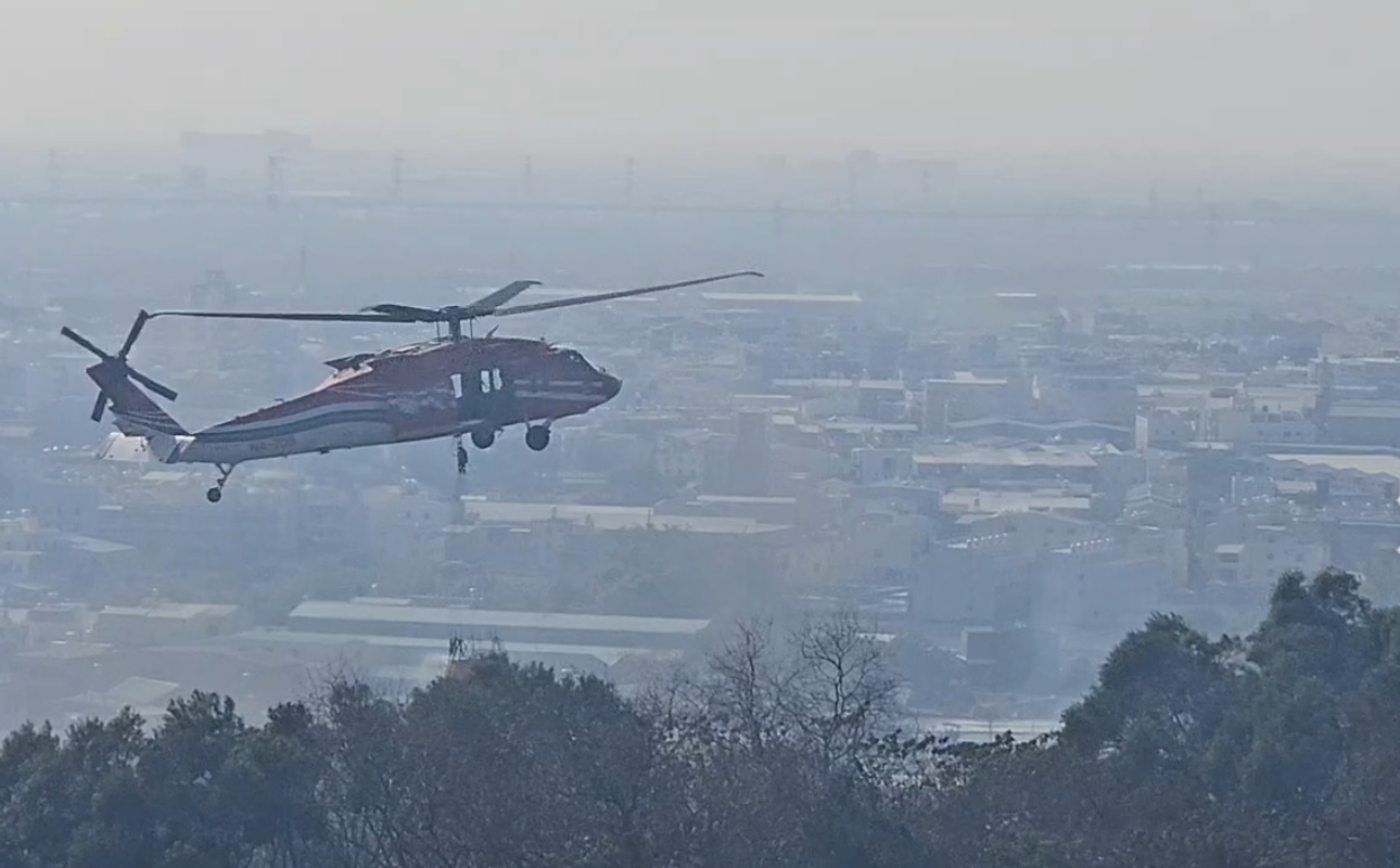 地面壓不住,只能請空中支援!空勤總隊直升機NA-705於下午2時28分從清泉崗機場起飛,前往大肚湖取水後投入滅火作業,直到下午3時39分才完成任務,單架直升機就投水9次、共18噸,直到13時49分火勢才終於獲得控制。
