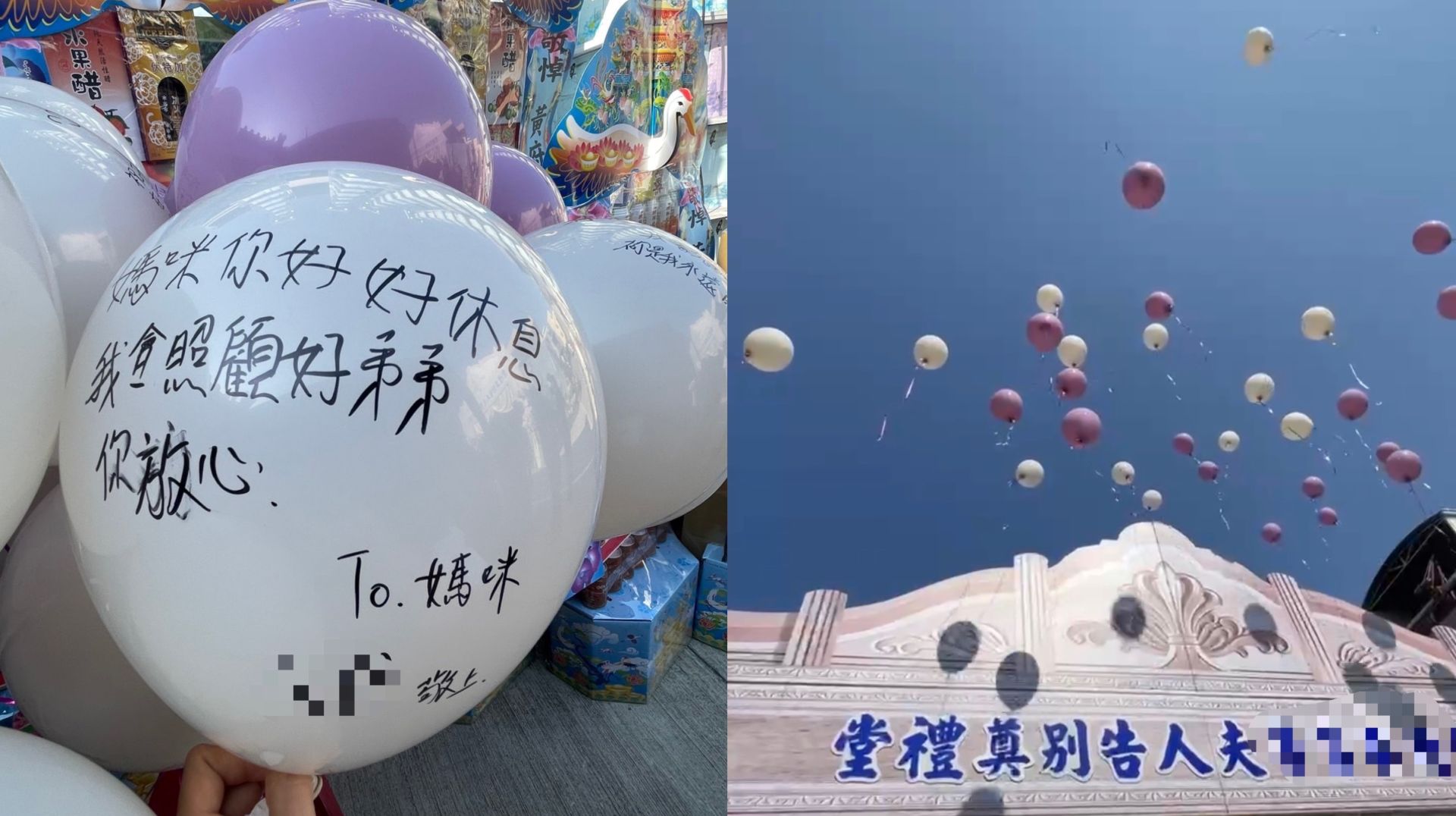 孩子們更親筆在氣球上寫下對母親的話「媽咪你好好休息,我會照顧弟弟你放心」、「我們會過得好好的,妳在那裡也要好好的」,隨著告別式播放的《再見的時候》,氣球緩緩升空,承載著思念飄向天際。