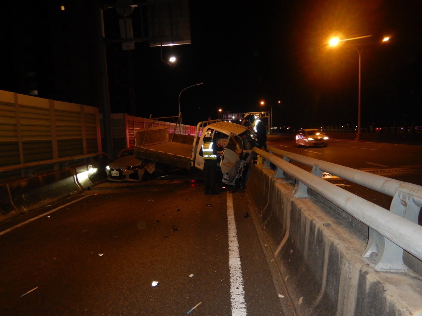 74快速道路深夜連環撞!擦撞後尾隨釀追撞 3人送醫.(圖/警方提供)