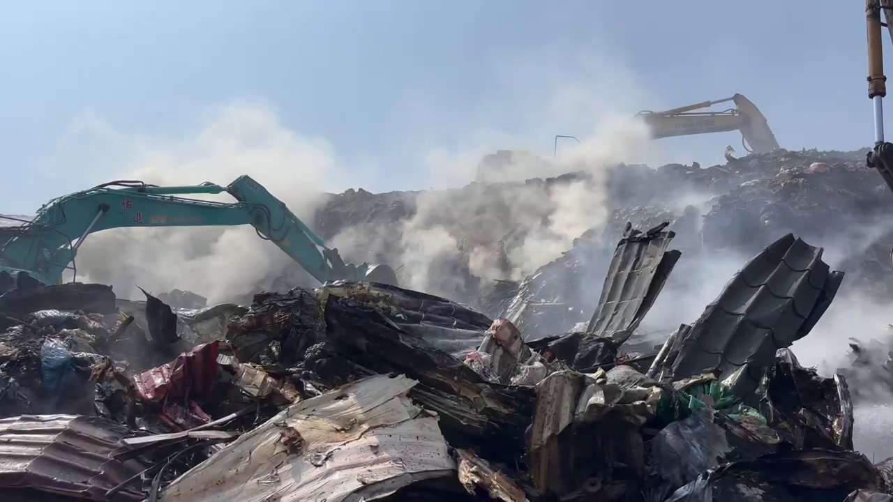 這處掩埋場近一年火警頻傳,已成老大難,凌晨2點27分消防抵達時火勢已擴大,悶燒廢棄物難撲滅,大隊長指揮加派水車、無人機監控,環保局挖土機開防火線、翻動垃圾斷火源,5點40分控制、6點24分撲滅,接著處理殘火避免復燃。