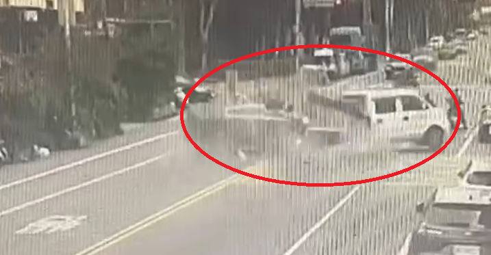 台中大甲自小客車高速追撞路口小貨車再往前推撞(紅圈處)。翻攝畫面