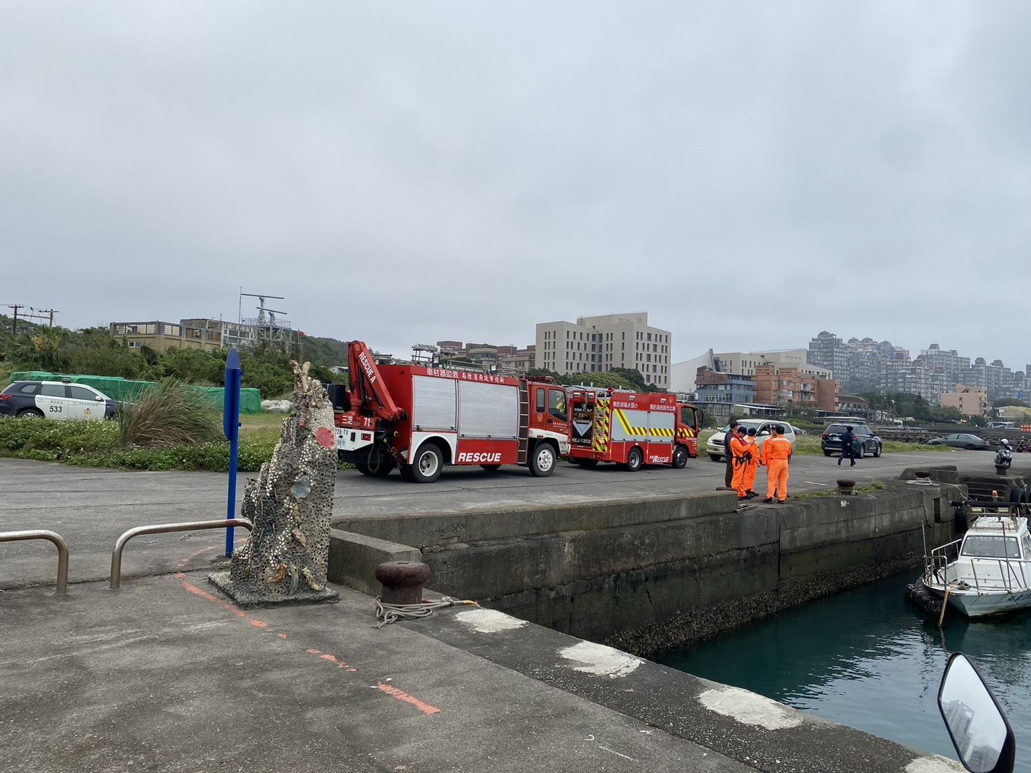 三芝後厝漁港汽車落海消防隊員到場救援。翻攝畫面