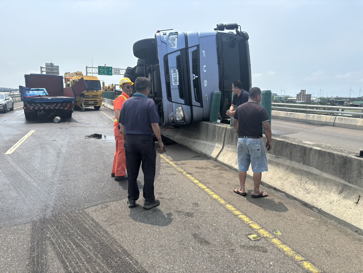 台61線漢寶路段車禍槽車翻覆。翻攝畫面