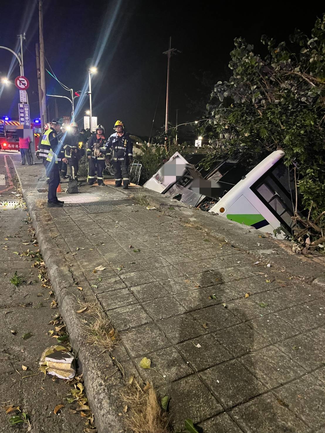 台中公車翻落路旁。翻攝畫面