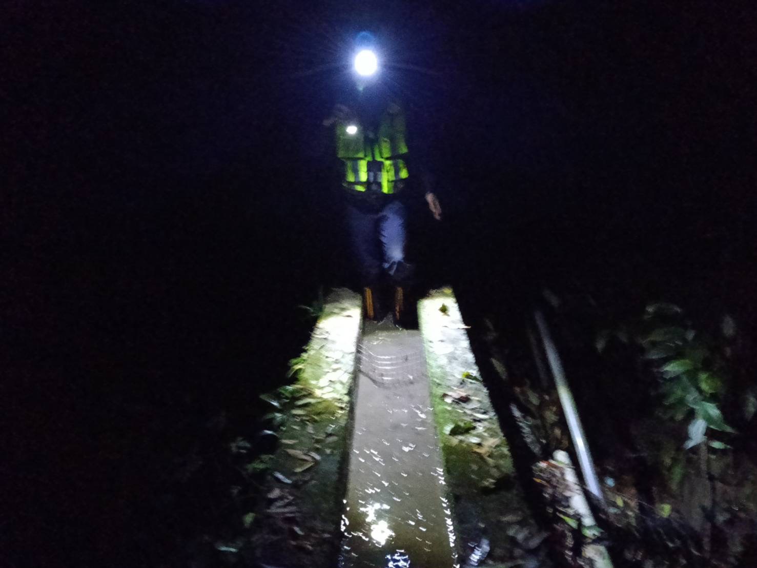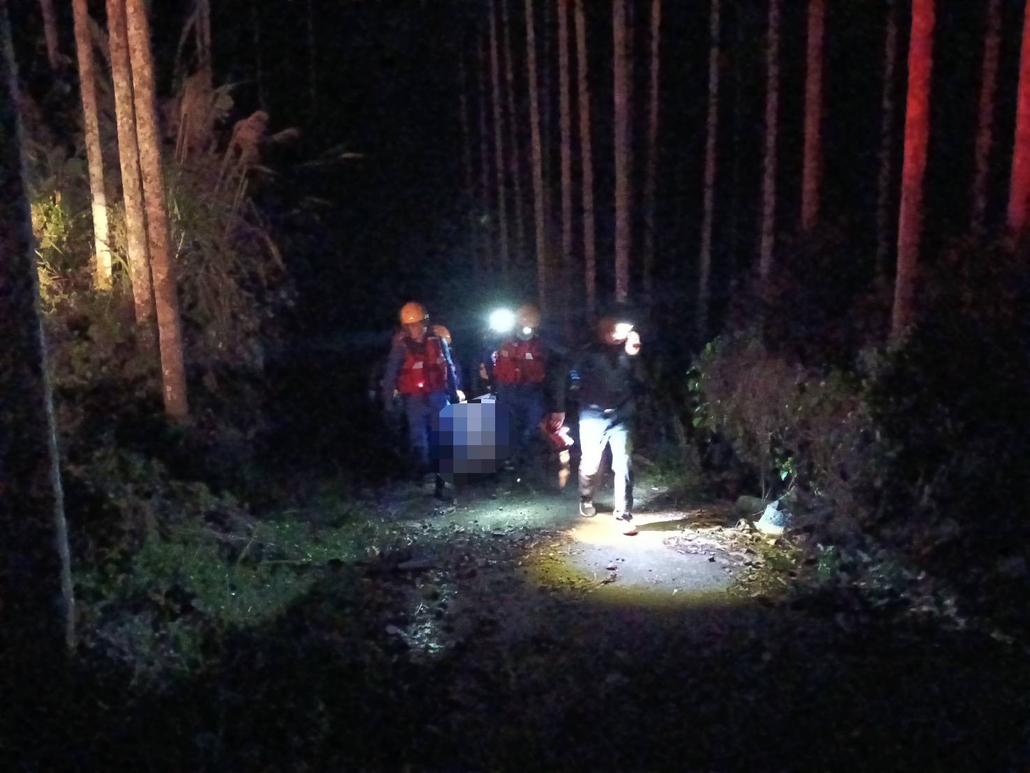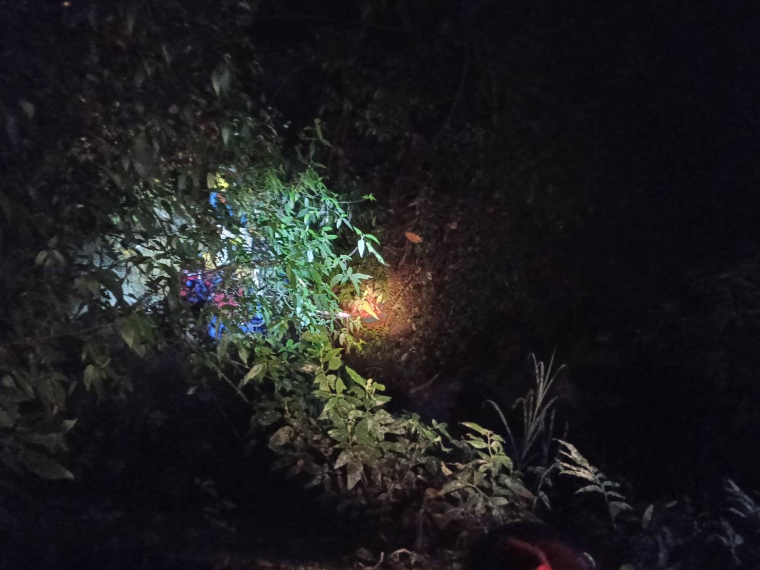 警消人員摸黑在山區搜尋。翻攝畫面