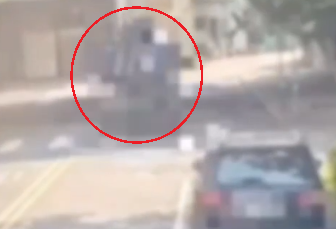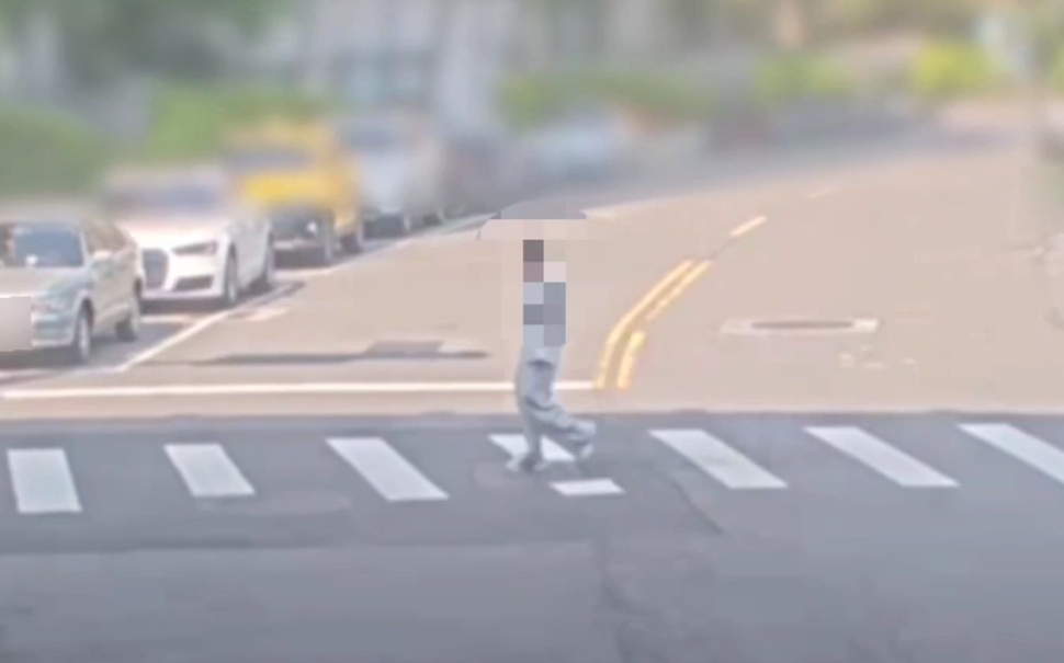 不明原因倒在路上遭小貨車輾死的簡姓男子,在案發前通過馬路的身影。翻攝畫面
