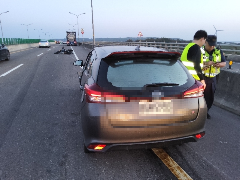 台61線重機自小客車相撞員警到場調查處理。翻攝畫面