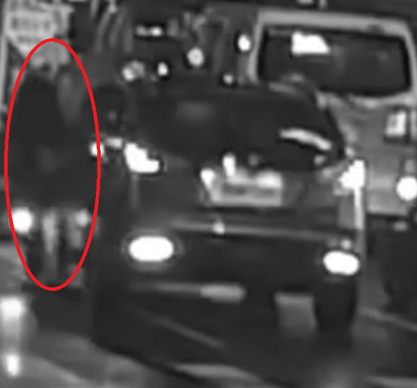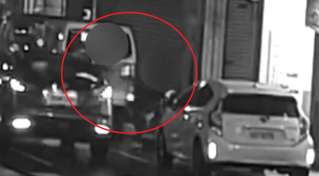 林姓男子(紅圈處)駕車尾隨曾姓男子至超商下車攻擊。翻攝畫面
