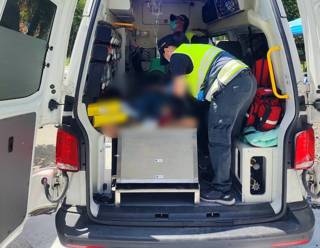 觸電墜地工人由救護車送醫。翻攝畫面